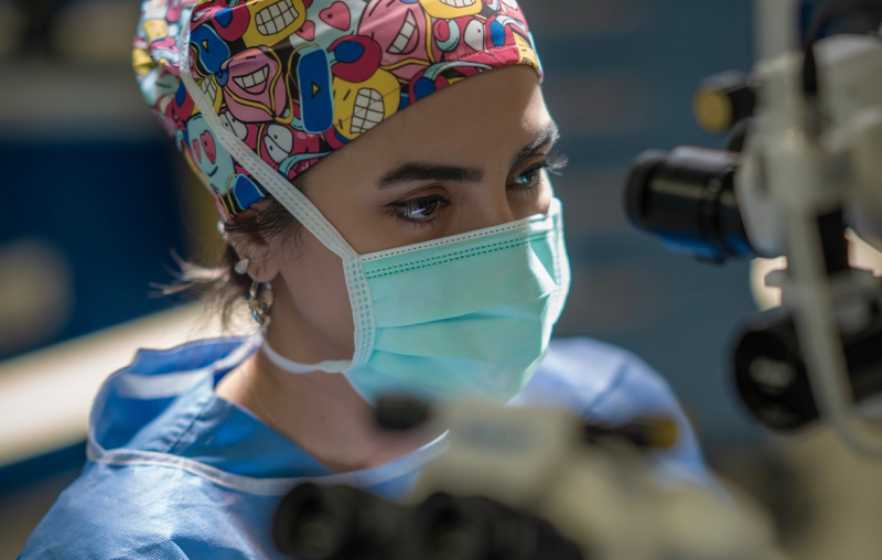 Between 2020 and 2021, she worked at Adana City Training and Research Hospital, and between 2021 and 2024, she worked at Istanbul Şişli Hamidiye Etfal Training and Research Hospital. During this period, she managed the Cornea-Anterior Segment and Oculoplasty units; she also worked as the cornea transplant responsible physician. During her tenure, she performed corneal transplants, complex cataract surgeries, eye and pupil injury repairs, secondary intraocular lens implantations, as well as functional and aesthetic eyelid surgeries and tear duct obstruction operations in the field of oculoplasty. She also played an active role in the theoretical training and cataract surgery practice of assistant doctors during this period.